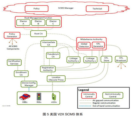 美国的车联网的安全体系SCMS是一个传统的CA体系+无证书密码体制相结合的系统(如图5)。系统中的匿名CA系统并不签发证书,而是采用ECQV算法生成部分私钥和公钥还原数据(隐式证书)。生成的密钥结合ECDSA算法对广播信令消息进行数字签名实现信令消息的数据源认证和一致性保护。该体系设计每年签发3000亿把钥匙。我们设计的基于ECDSA的无证书数字签名算法比ECQV+ECDSA的安全性更好,公钥计算效率更高。