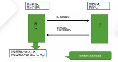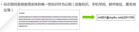关于标识密码机制。通过使用实体的唯一性标识作为公钥(设备标识、手机号码、邮件地址、匿名地址等),图中左侧是传统的秘钥,而标识密码是直接用标识作为公钥,可以抵抗公钥替换攻击、无需额外公钥存储、无需证书、无需复杂的PKI基础实施。