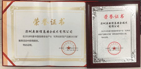 1月18日, 由中国互联网发展基金会指导、《中国信息安全》杂志社主办、《中国信息安全》理事会承办的2018年度“推荐创新型产品解决方案和领军人物”活动在北京举行。活动现场,中国工程院院士倪光南揭晓了获得推荐的15个创新型产品解决方案,其中 奥联基于国密SM9算法的加密电子邮件解决方案——密九邮荣获“优秀创新型产品解决方案”。
